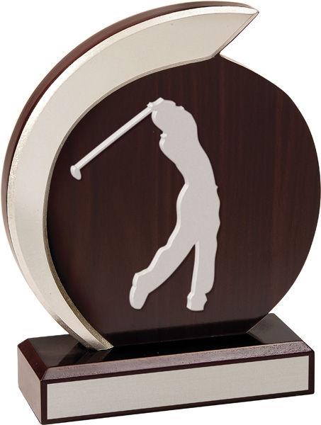 Cherrywood laminate trophy with silver golf relief. Great way to recognize an individual player!